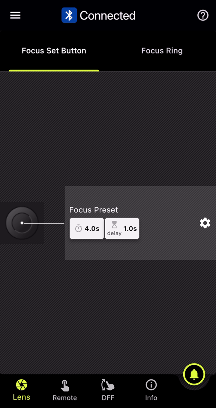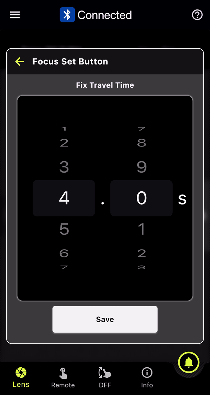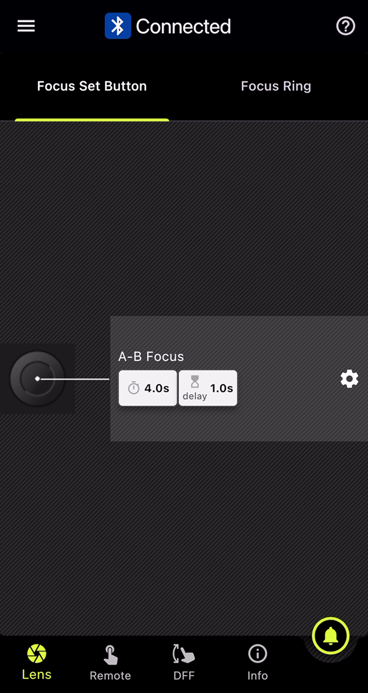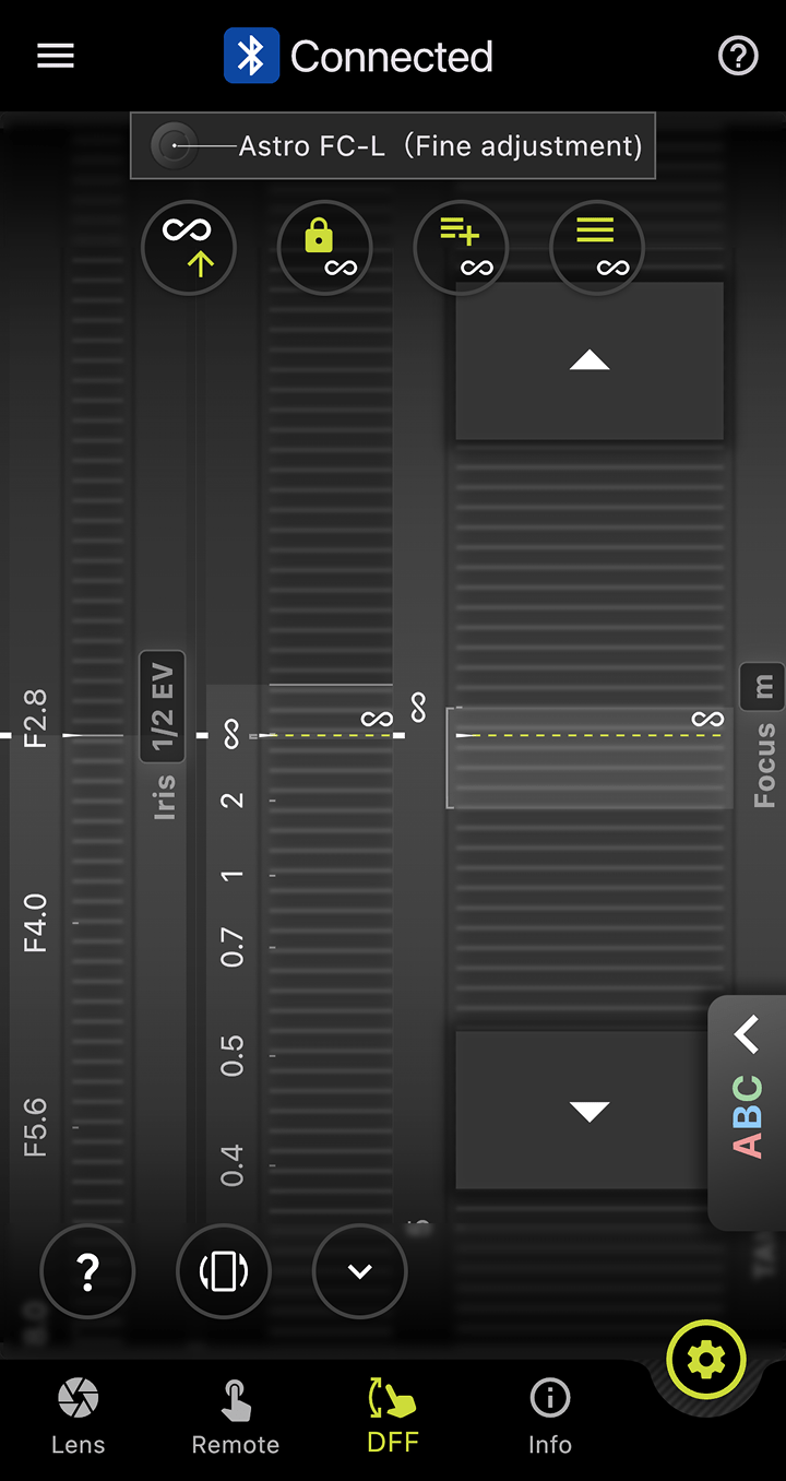 此功能可在对焦环和光圈环上分别设置标记。在DFF(Digital Follow Focus)界面中,只需轻点一下即可同时将焦点和光圈值移至预先设置的标记位置。
