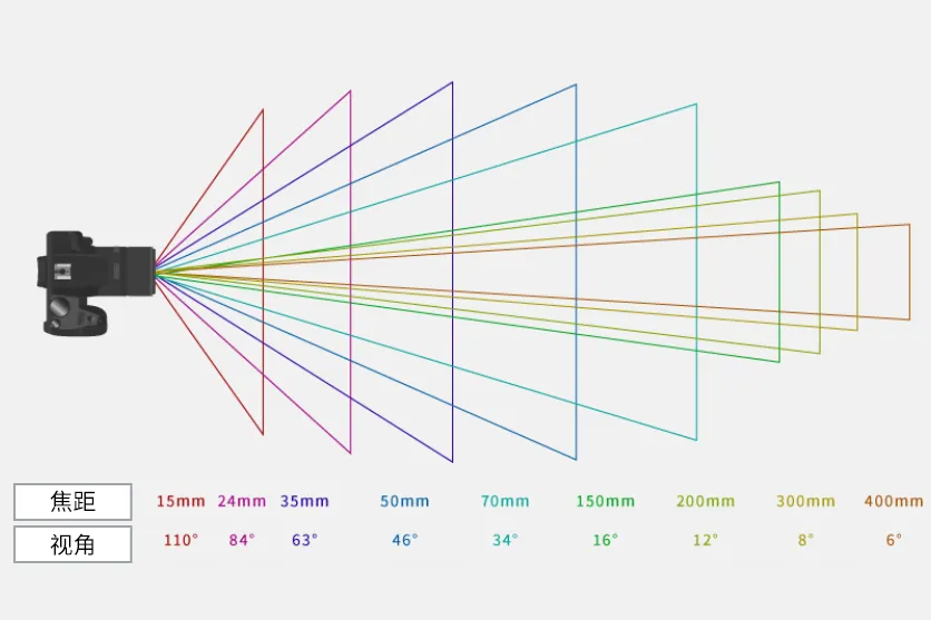 视角表示相机可以捕获的图像范围,以角度表示。镜头的焦距决定了它的视角有多大。